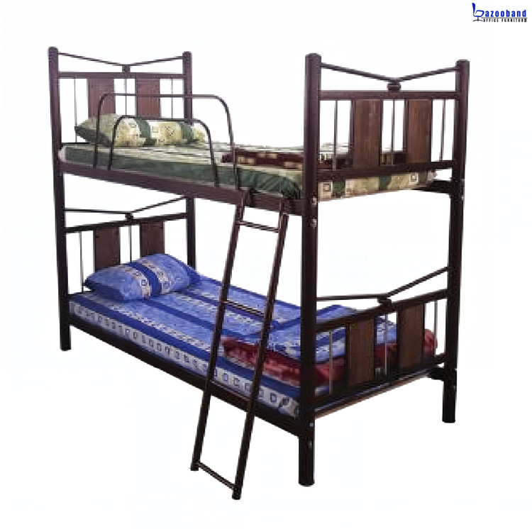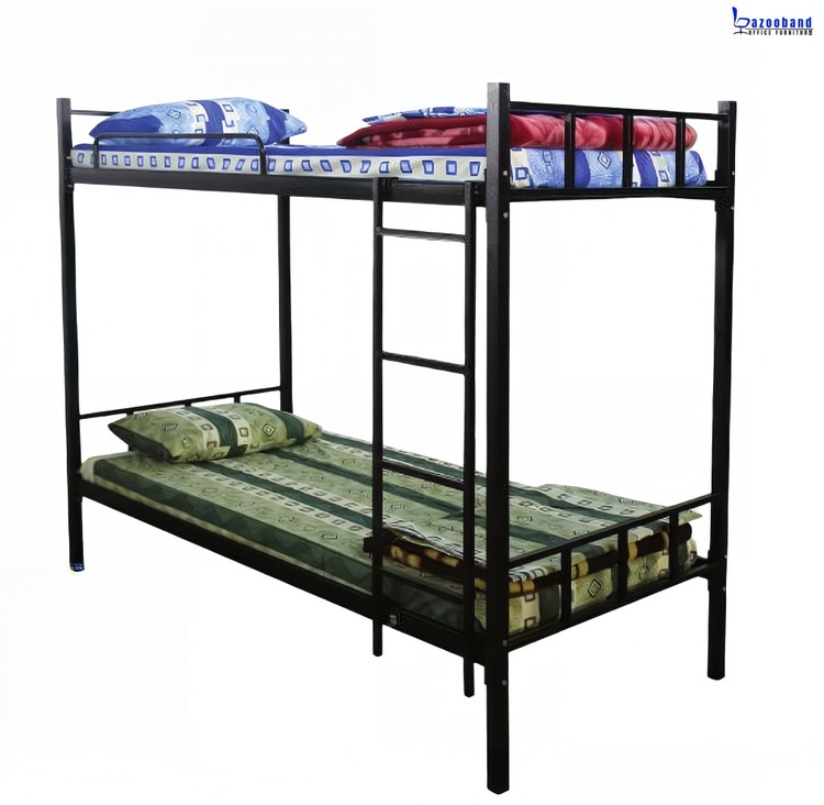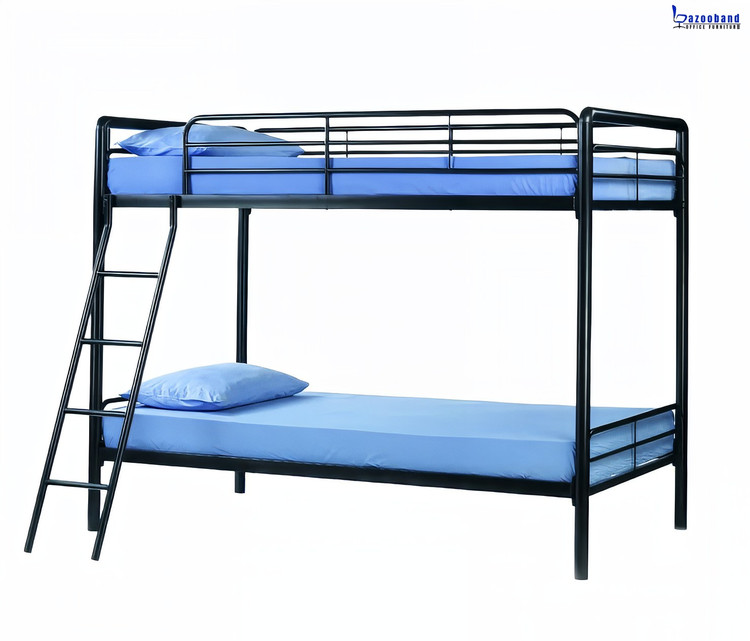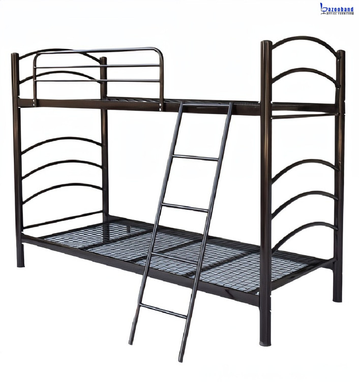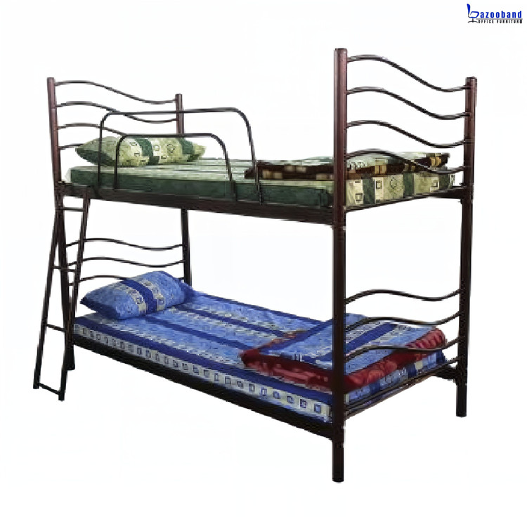 تخت خوابگاهی دو طبقه فلزی با حفاظ و نردبان