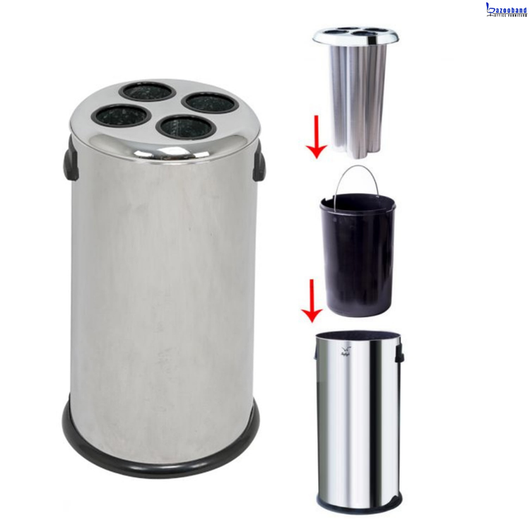 ▫️سطل های جا لیوانی دار شامل چند تکه می باشند که سطل داخلی آن برای جمع آوری و جابجایی زباله ی جمع شده و سطل بیرونی آن که از جنس استیل میباشد، جهت زیبایی و استحکام محصول است. این محصول در رنگبندی های رنگی، استیل هرلاین و استیل نگیر قابل سفارش میباشد
