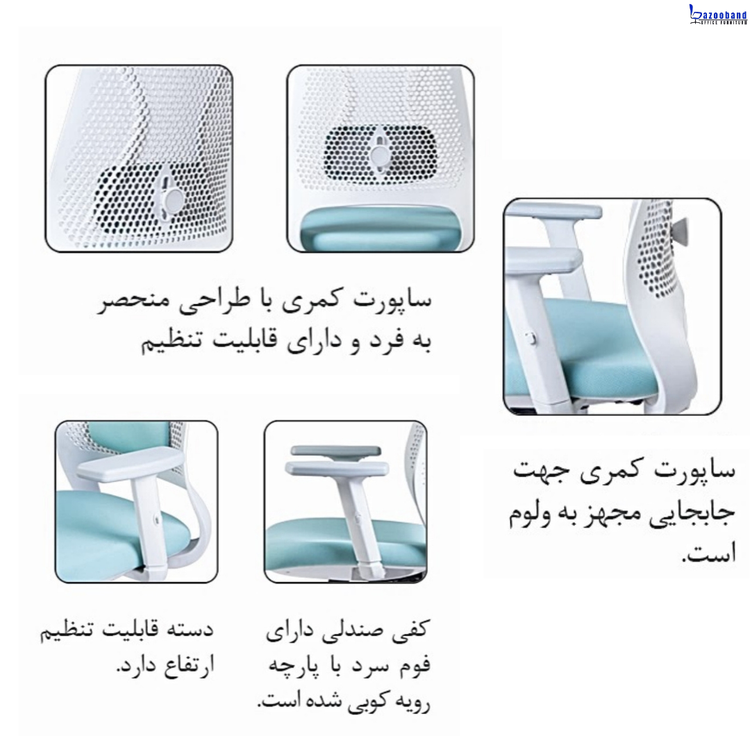 🔸پشتی تکیه گاه طبق اصول ارگونومی بدن جهت پر کردن گودی کمر