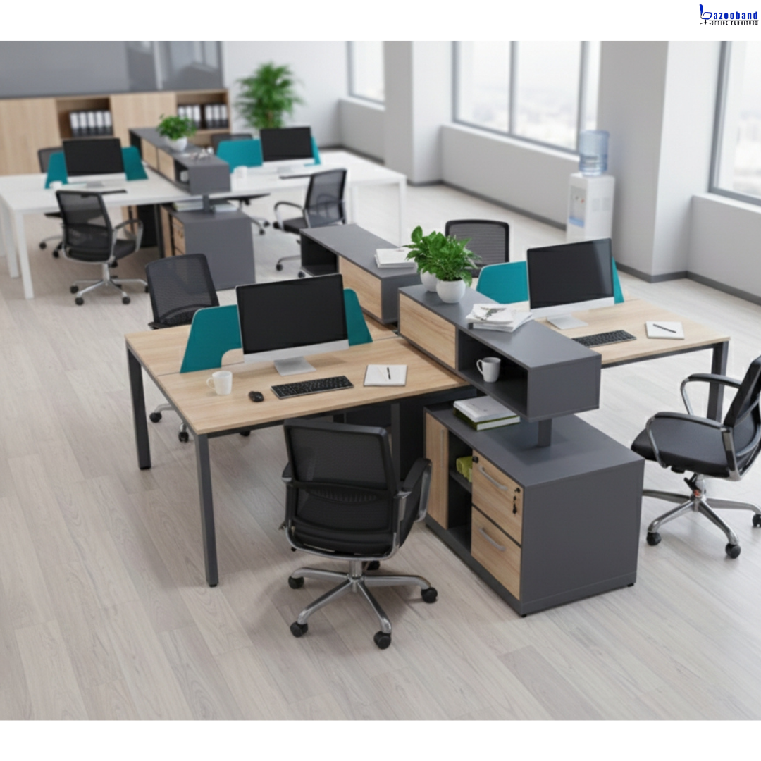 میز کار های گروهی بیشتر در طراحی فضاهای باز اداری کاربرد دارد و پس از ایجاد کار های تیمی از محبوبیت زیادی برخوردار شده اند. این میزها به عنوان ایستگاه های کاری، همکاری فراگیری را در بین کارمندان ایجاد کرده است که سبب بهبود روابط آنان نیز خواهد شده است. میزهای گروهی از زیر دسته میز اداری است که با فراهم آوردن افراد در کنار هم برای برگزاری جلسات گروهی، هماهنگی خوبی در پروژه های گروهی به وجود آورده اند و در رنگ ها، اندازه ها و مدل های مختلفی طراحی و تولید می شوند که می توانید با توجه به نیازهایتان آنها را سفارش دهید.