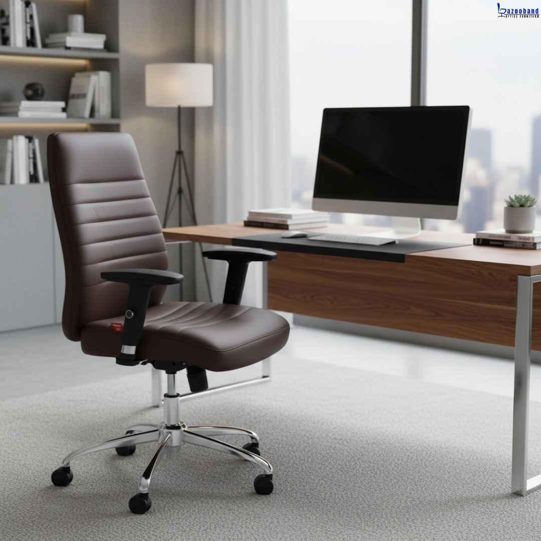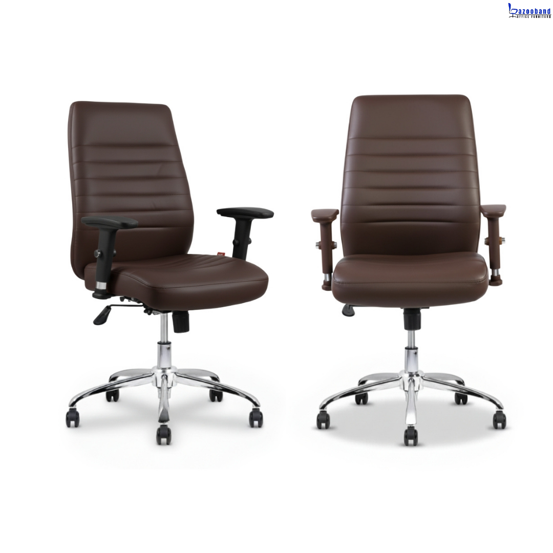 صندلی کارشناسی کد T408 بر اساس استانداردهای ارگونومی طراحی شده است و از سلامت بدن حمایت می کند. انحنای مناسب پشتی در کنار نشیمنگاه راحت و نرم باعث افزایش راندمان کاری کارمندان و جلوگیری از دردهای جسمانی می شود. این صندلی علاوه بر قابلیت هایی چون تنظیم دسته صندلی، پایه های گردان مستحکم، پشتی ارگونومیک و تنظیم ارتفاع صندلی دارای روکش چرم مرغوب نیز می باشد.