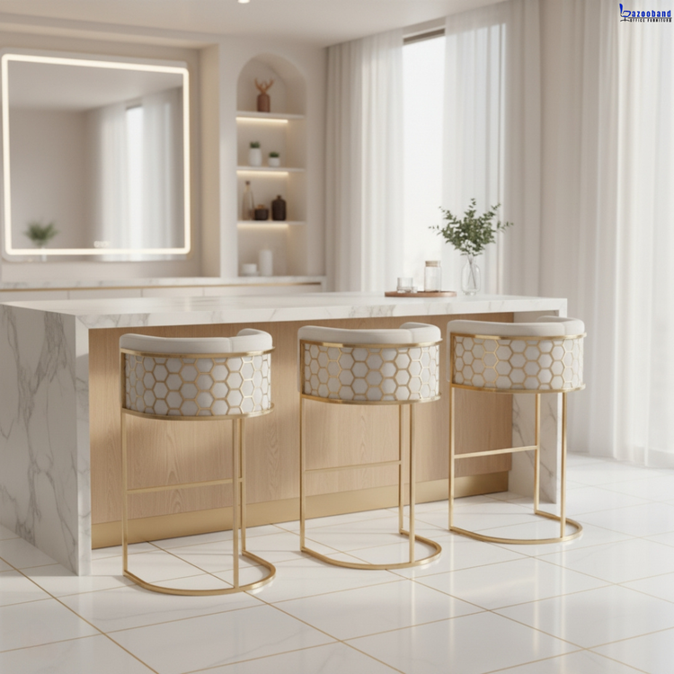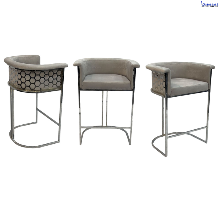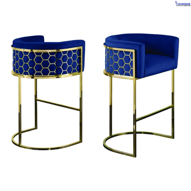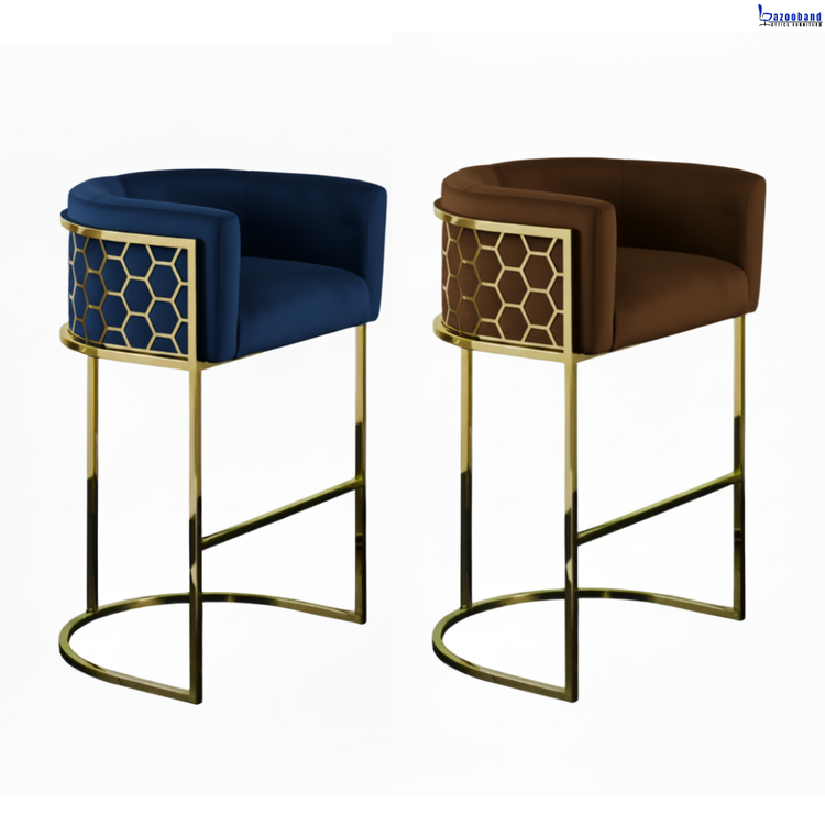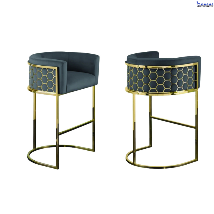 ▫️صندلی کانتر مدل زنبوری از پرطرفدارترین و زیباترین نمونه صندلی های اپن میباشد که در عین سادگی و زیبایی خاص خود جلوه زیبایی نیز به فضای شما ارائه میدهد.متریال استفاده شده در این مدل زیبا فلز آبکاری شده میباشد که درخشش بینظیری دارد. اسکلت این صندلی در دو رنگ طلایی و نقره ای میباشد. رنگ پارچه این مدل زیبا دارای تنوع بسیار بالایی دارد.