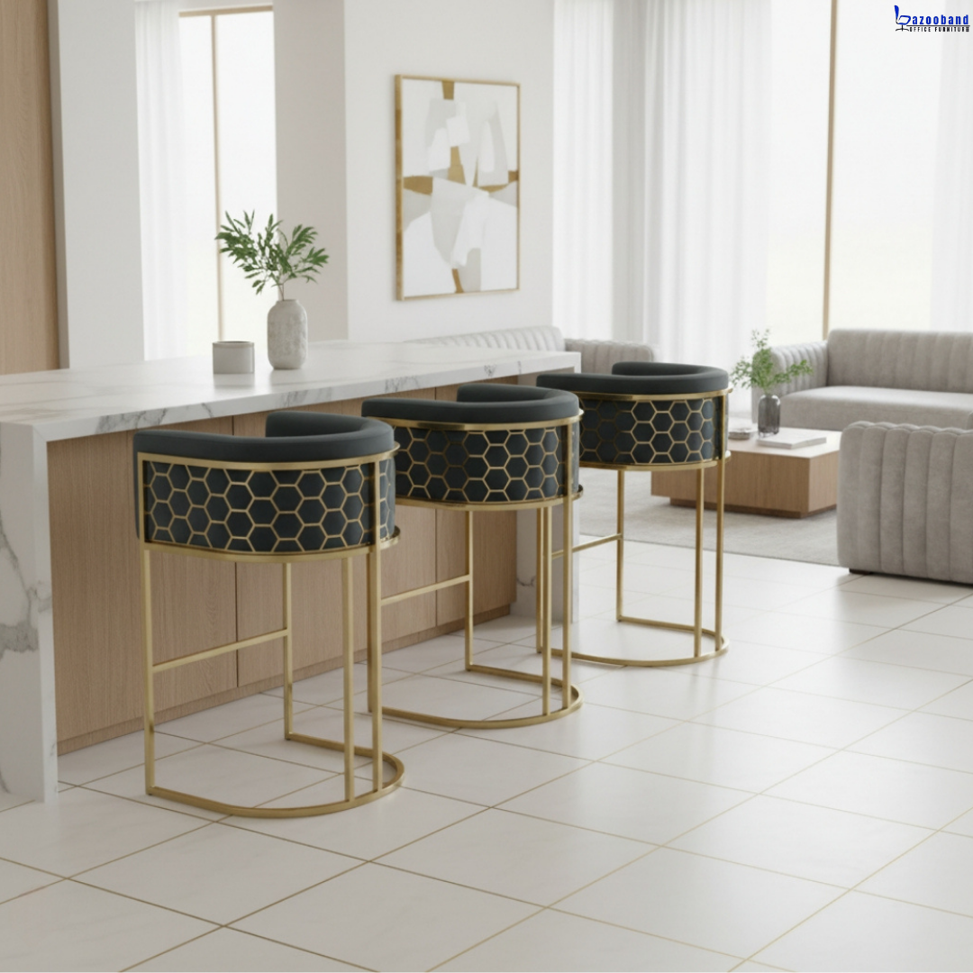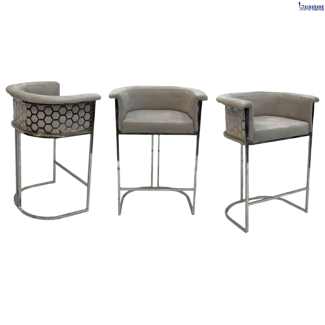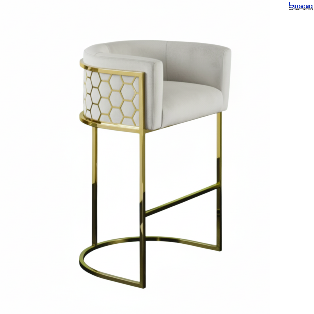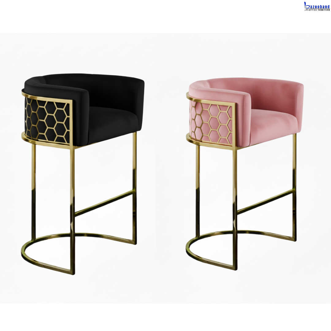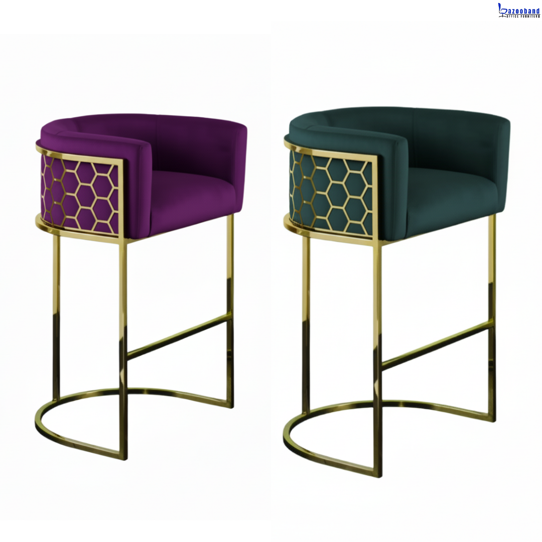 ▫️صندلی کانتر مدل زنبوری از پرطرفدارترین و زیباترین نمونه صندلی های اپن میباشد که در عین سادگی و زیبایی خاص خود جلوه زیبایی نیز به فضای شما ارائه میدهد.متریال استفاده شده در این مدل زیبا فلز آبکاری شده میباشد که درخشش بینظیری دارد. اسکلت این صندلی در دو رنگ طلایی و نقره ای میباشد. رنگ پارچه این مدل زیبا دارای تنوع بسیار بالایی دارد.
