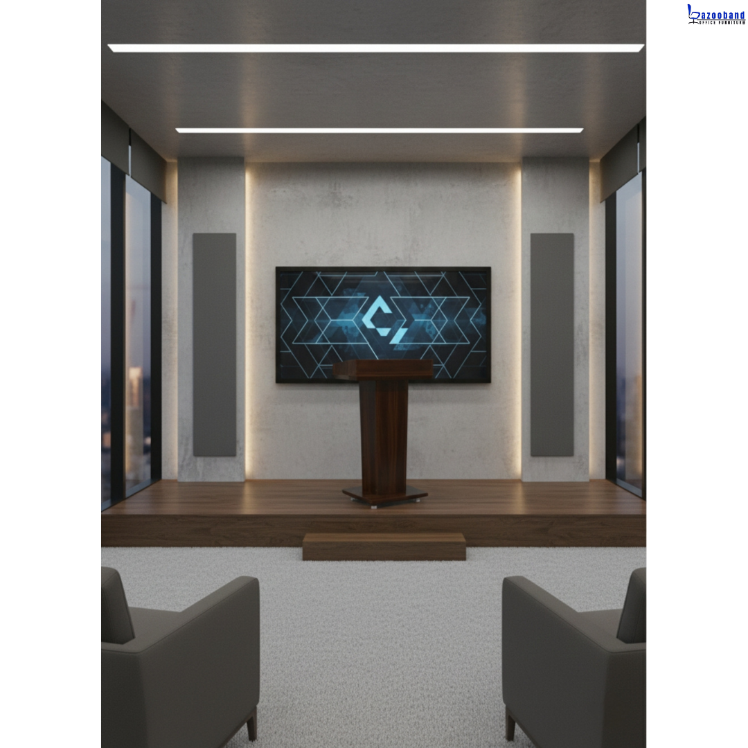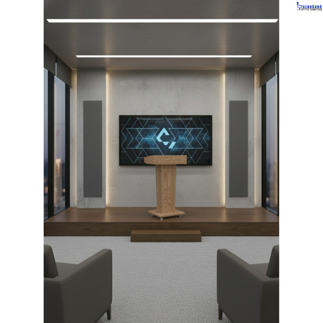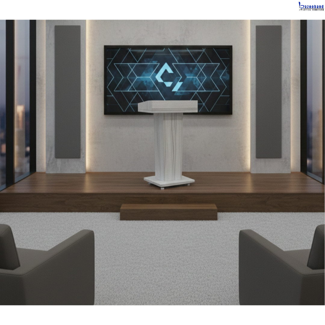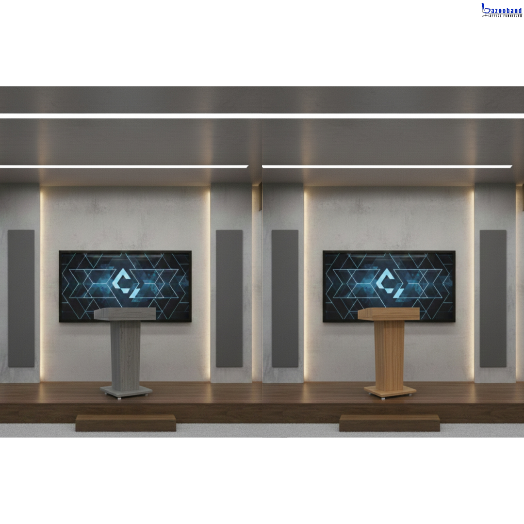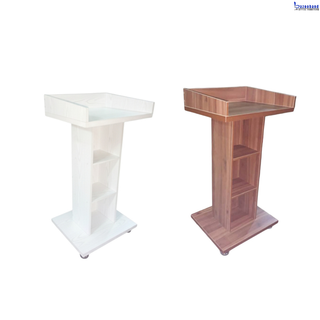 ▫️امروزه میزهای سخنرانی از جنس ام دی اف و ملامینه و به منظور استفاده در همایش و سخنرانی ساخته شده است . میز همایش و یا میز سخنرانی میتواند کاملا سفارشی و طبق نظر هر ارگان و شرکت و دانشگاه ساخته شود و امکان نصب و درج لوگو بر روی آن امکان پذیر میباشد. میز تریبون یک نوع میز تخصصی برای ایراد سخنرانی است، که بسیار کاربردی و مهم است. این نوع میز مناسب استفاده در سمینار، سالن های اجتماعات، آمفی تئاتر، همایش، اجلاس، مدرسه، سالن های عمومی، ارگانها، شرکت ها، دانشگا ه ها، مدارس، مساجد، نمازخانه ها و … می باشد.